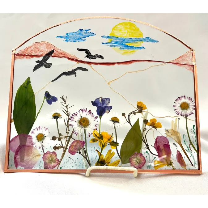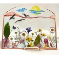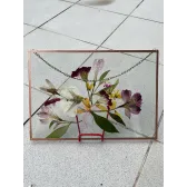 Tablou sticlă cu flori presate și pictate 21*18 cm