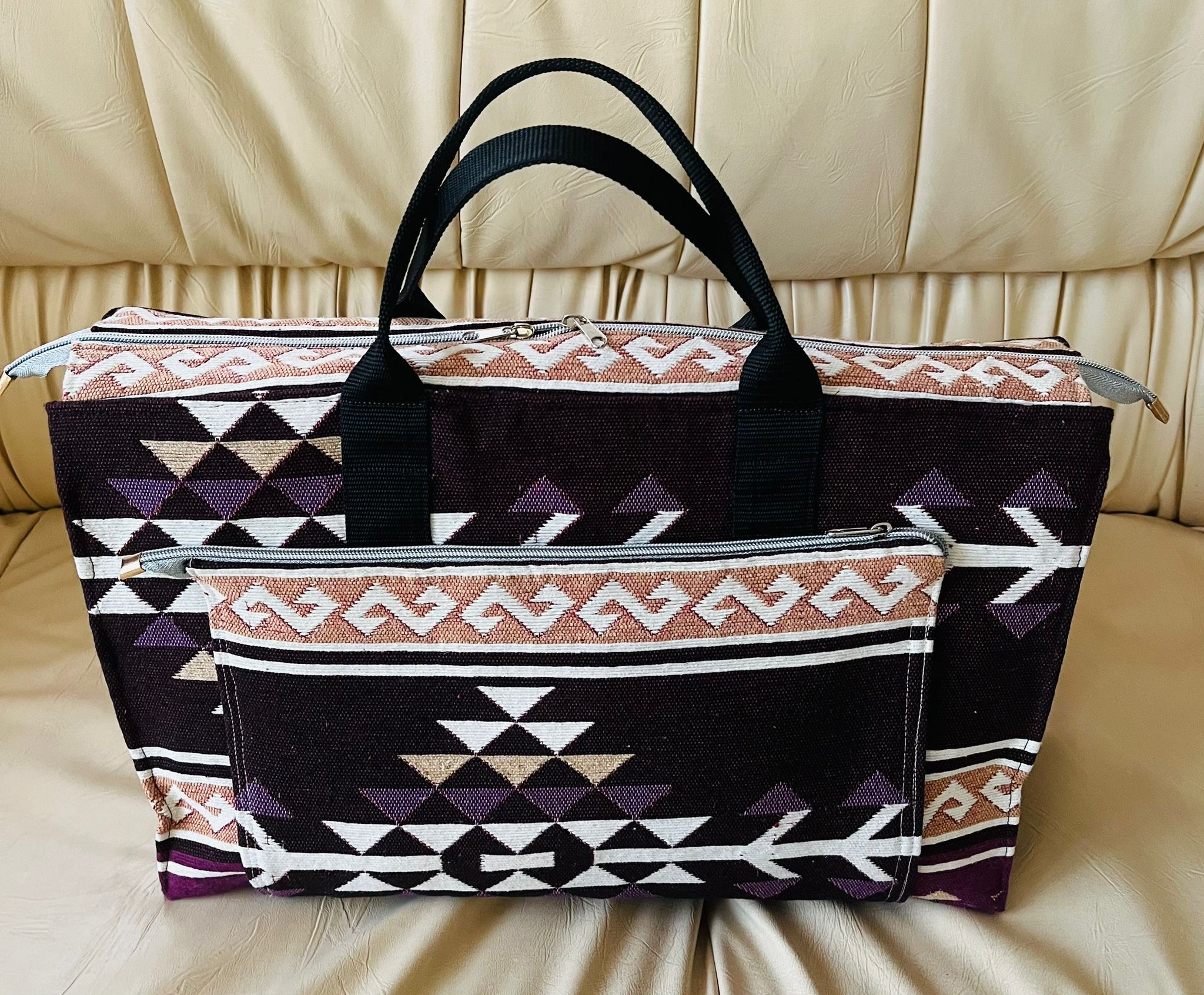 Geantă de voiaj din material țesut 49*30*18 cu buzunare , căptușita la interior cu material textil și încheiere cu fermoar Practică, având două mânere scurte de aproximativ 20 centimetri pentru purtarea in mana .Potrivită pentru ținute casual sau elegante, sport, serviciu dar in special pentru călătorii,oferind distincție și prestanță.
