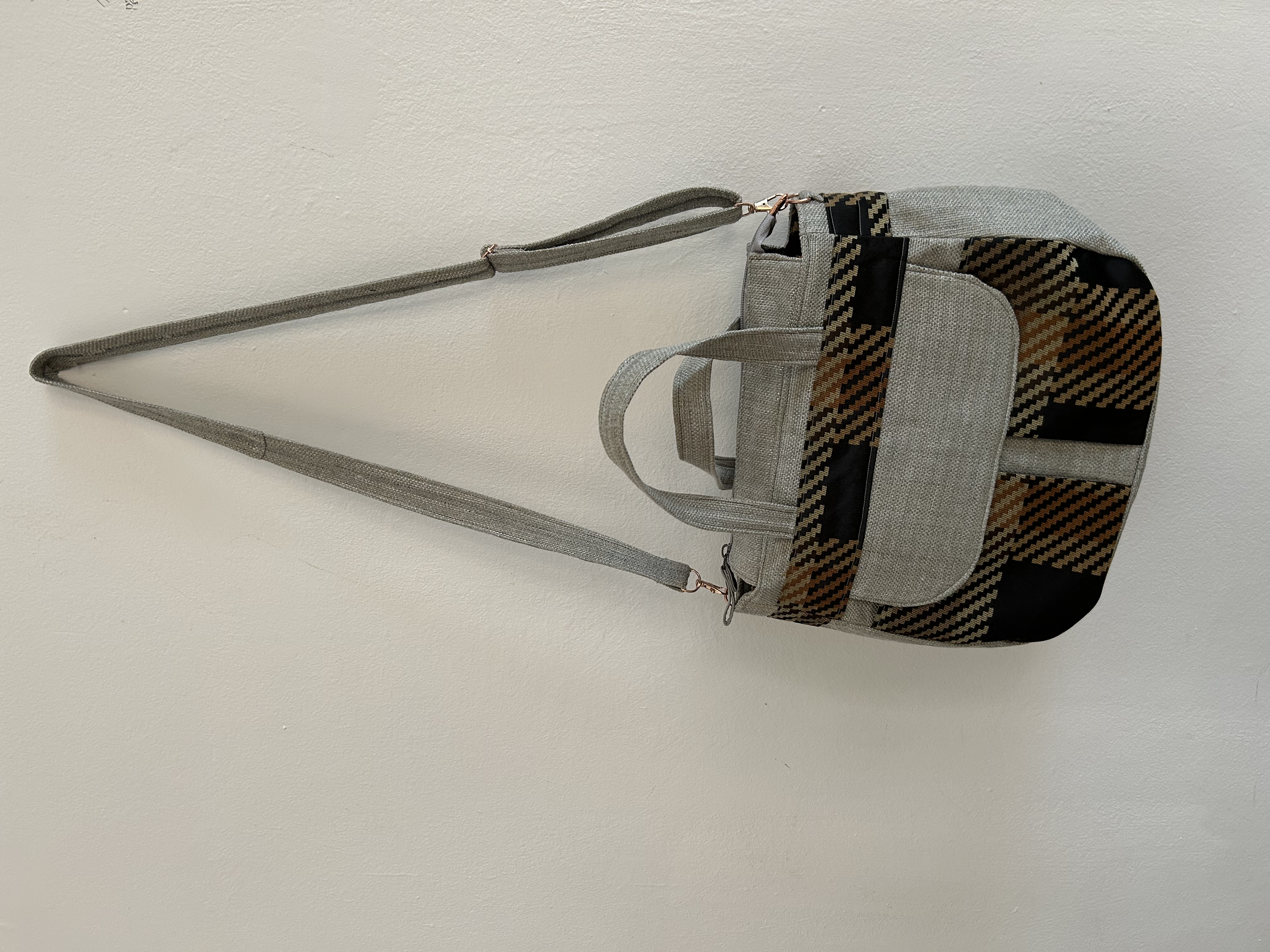 Geantă material textil 30*26*9 cu buzunare exterior si buzunare in interior. Practică, având două mânere scurte de aproximativ 20 centimetri pentru purtarea in mana și o curea de aproximativ 1,1metri, reglabilă, pentru umăr. Potrivită pentru ținute casual sau elegante, sport, serviciu sau cumpărături.