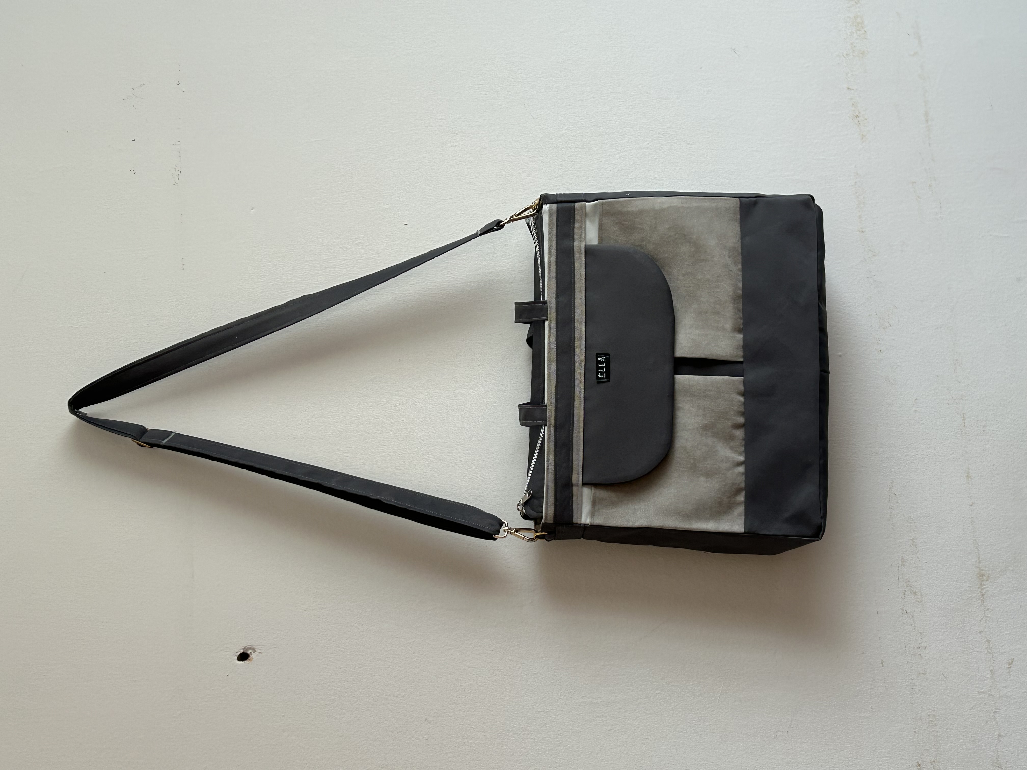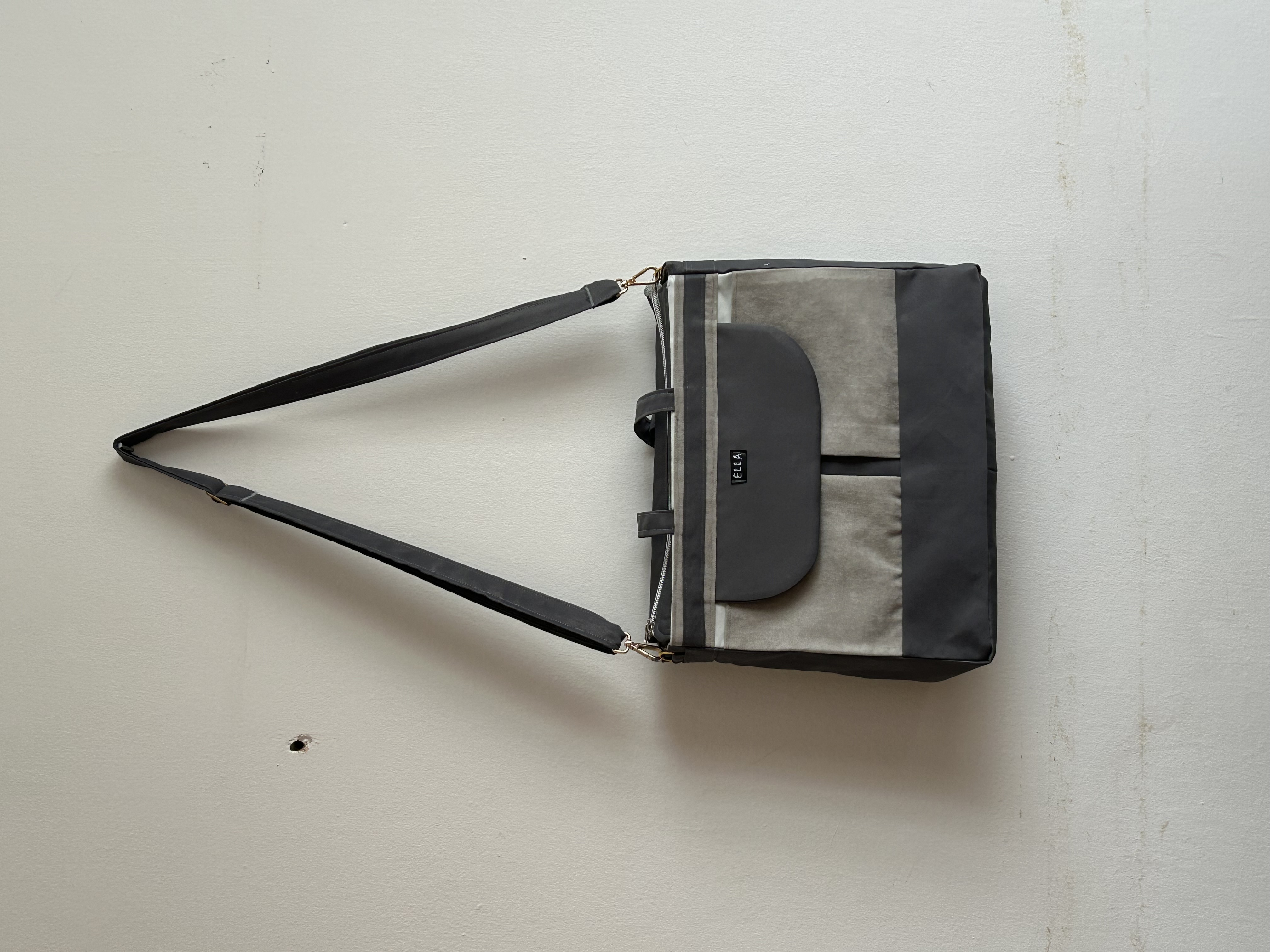 Geantă material textil 36*28*11 cu buzunare exterior si buzunare in interior. Practică, având două mânere scurte de aproximativ 20 centimetri pentru purtarea in mana și o curea de aproximativ 1,1metri, reglabilă, pentru umăr. Potrivită pentru ținute casual sau elegante, sport, serviciu sau cumpărături.