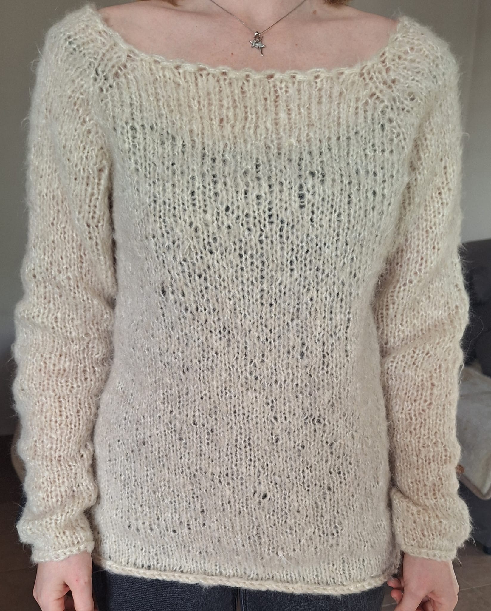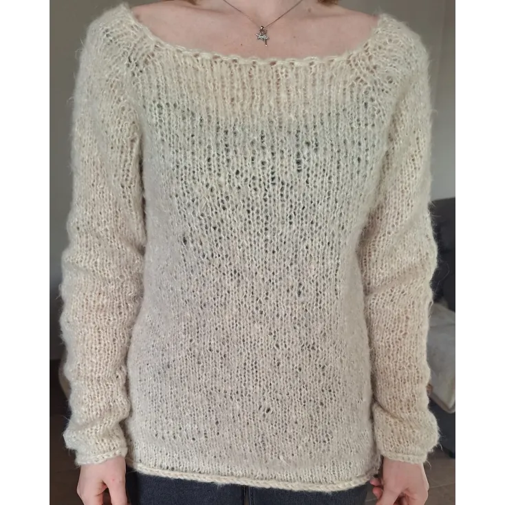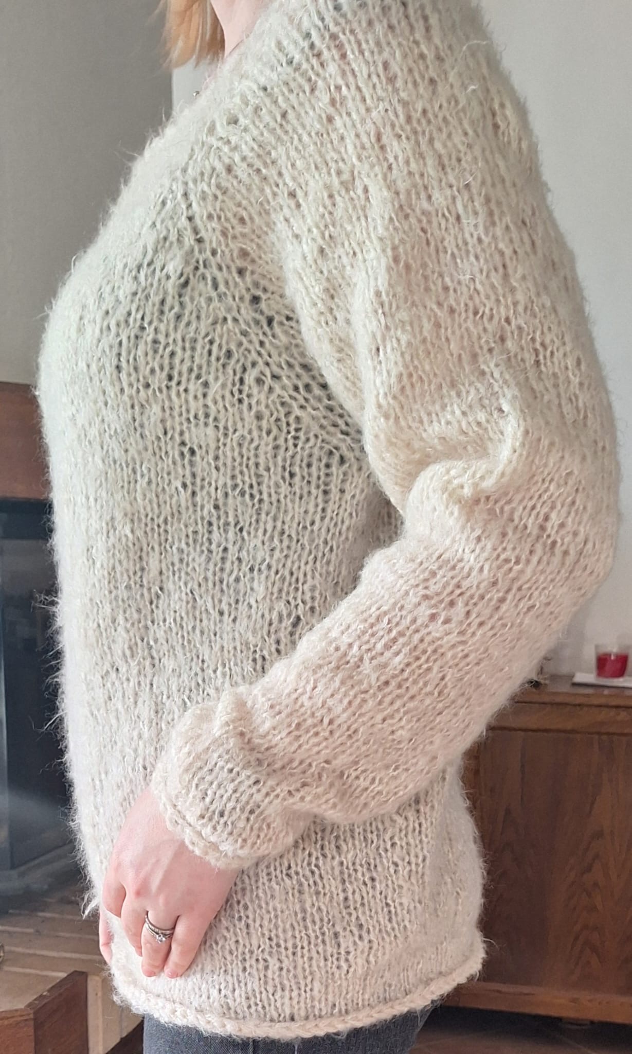Pulover tricotat manual din fir neîntrerupt  potrivit pentru ținută de zi cu zi , casual dar și pentru birou .
