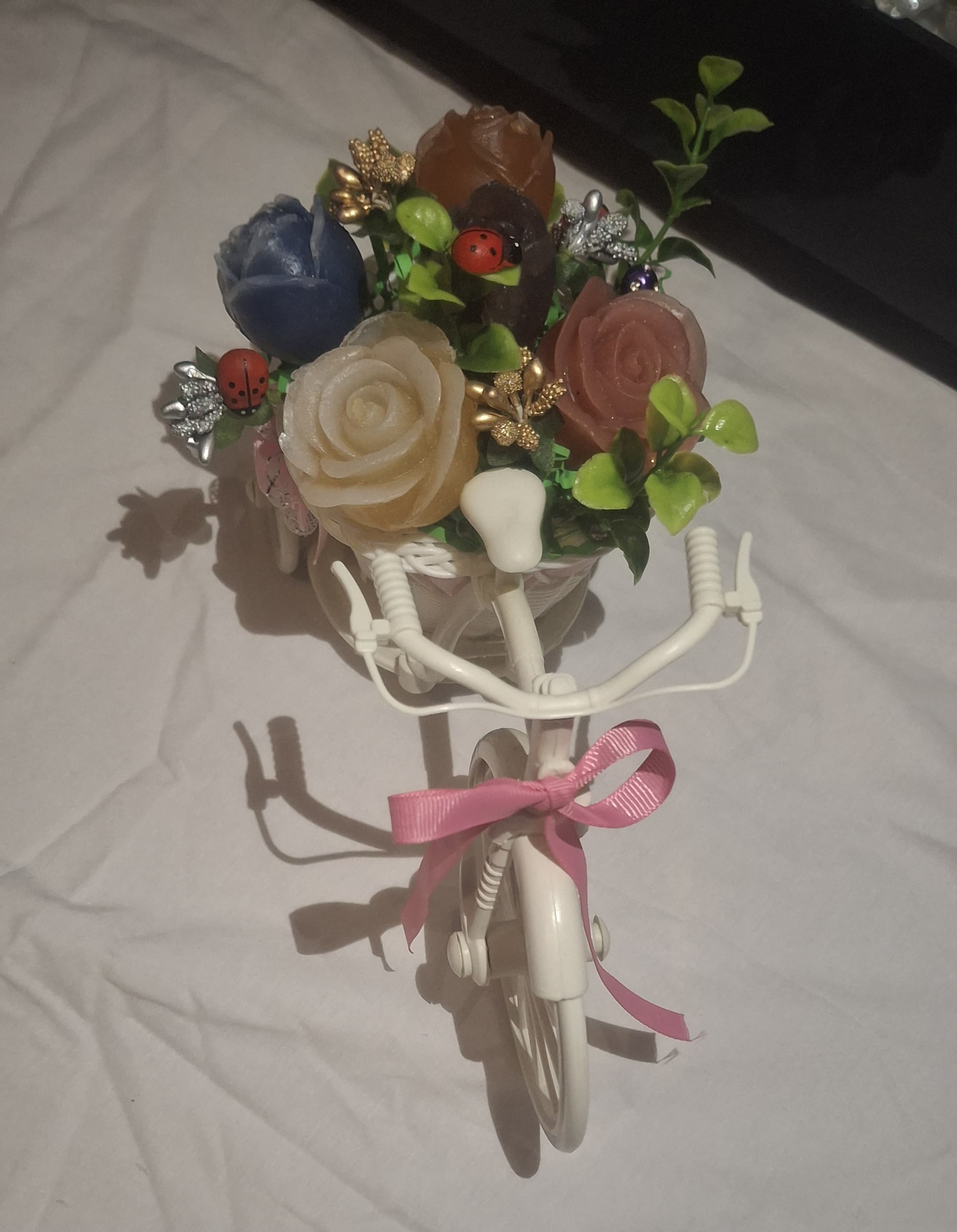 Aranjament floral decorativ realizat manual. Florile sunt confectionate din sapun hipoalergenic de diferite culori.