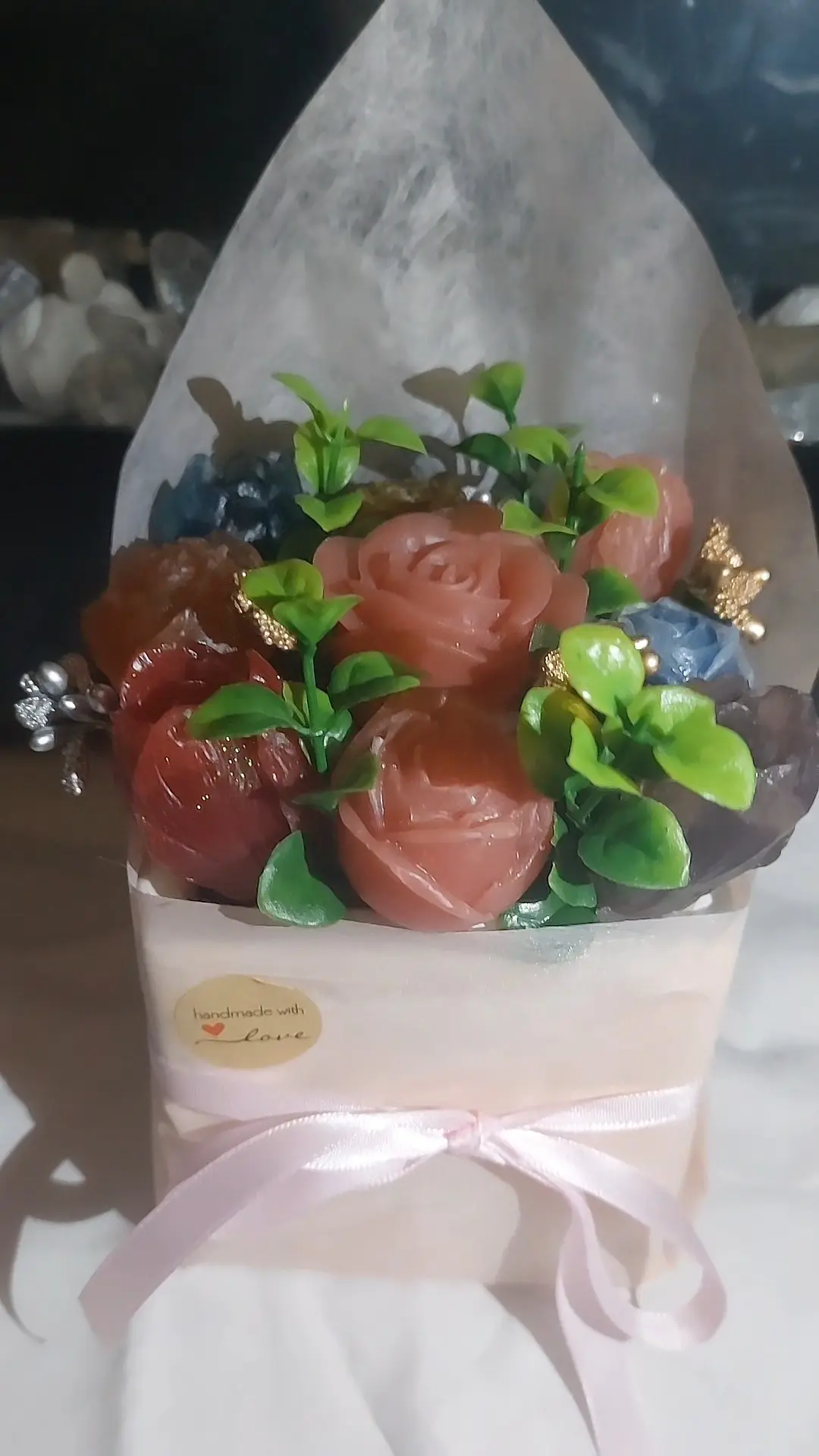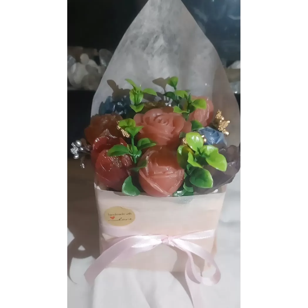 Un buchet frumos de trandafiri viu colorati,creati din sapun hipoalergenic si cu un parfum deosebit,aranjati cu grija intro cutie eleganta,gata de a fi oferit.