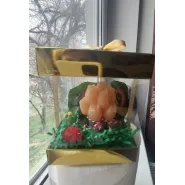Acest aranjament minunat  este confecționat din ciocolata kinder,înăuntru având un cățeluș de plus și decorata cu trandafiri artificiali .