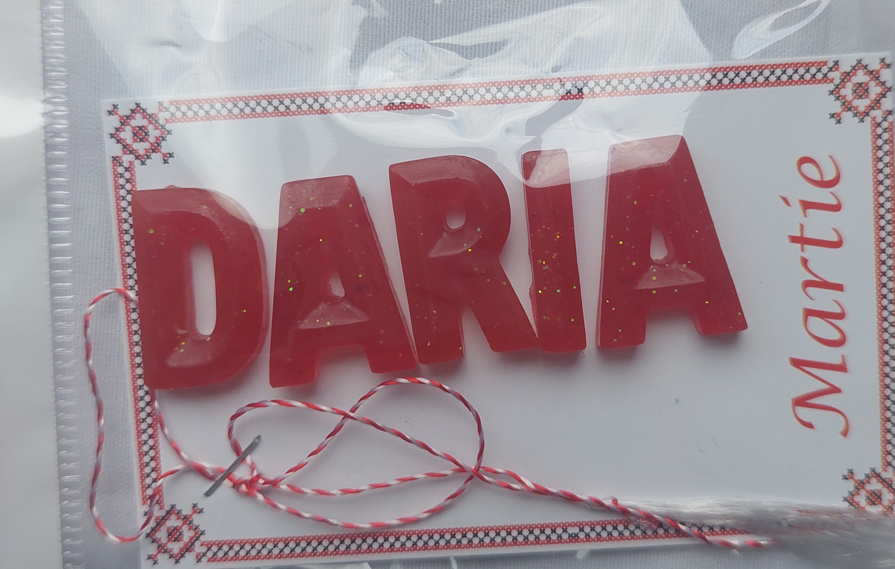 Este un martisor cu numele Daria făcut din sapun parfumat ,culoarea de poate face pe comanda în funcție de ce doriți