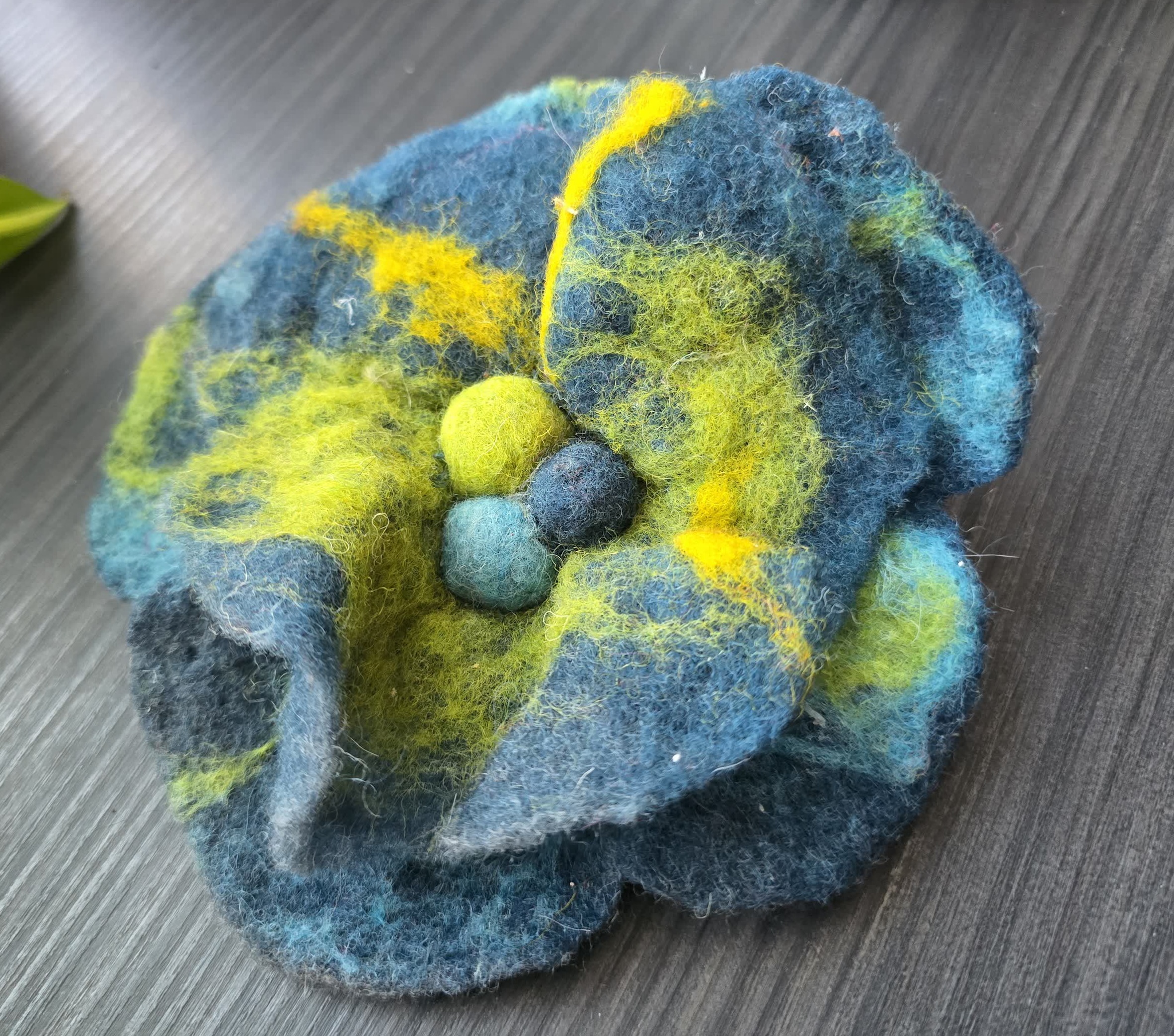 Brosa realizata din lana impaslita. Unicat. Dimensiune aproximativ 15 cm.