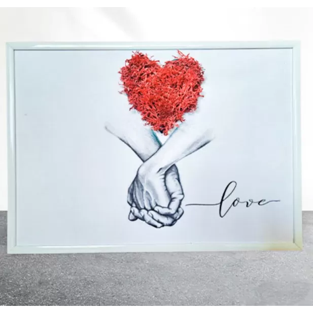 Tablou cu licheni stabilizati decorativi in forma de inima. Un cadou sensibil, deosebit, pentru persoana iubita.