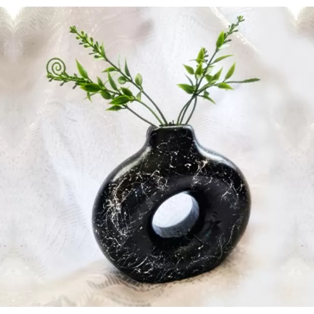 Aceasta vaza Donut ce este confectionata din ceramica , isi pune amprenta pe stilul existent in locul in care este amplasata si ofera un plus de unicitate si originalitate decorului. Mai mult decat atat,aceste vazele sunt privite ca cea mai buna alegere cand vine vorba de oferirea unui cadou. Chiar daca nu cunosti bine persoana, o vaza neagra cu alb, isi va gasi mereu locul in inima oricui si in orice incapere.