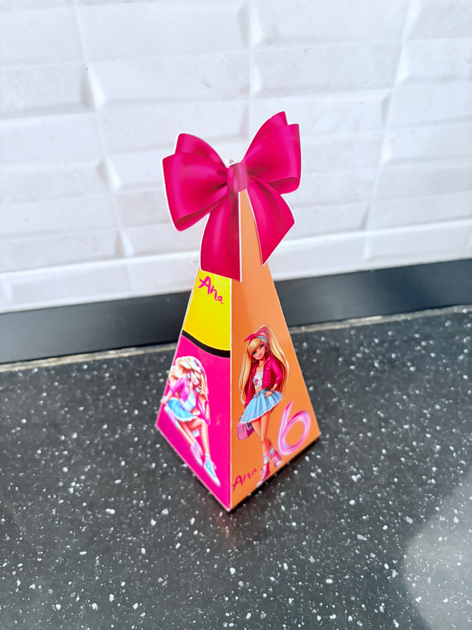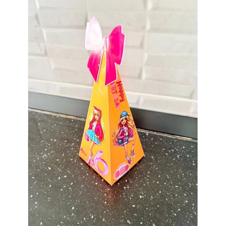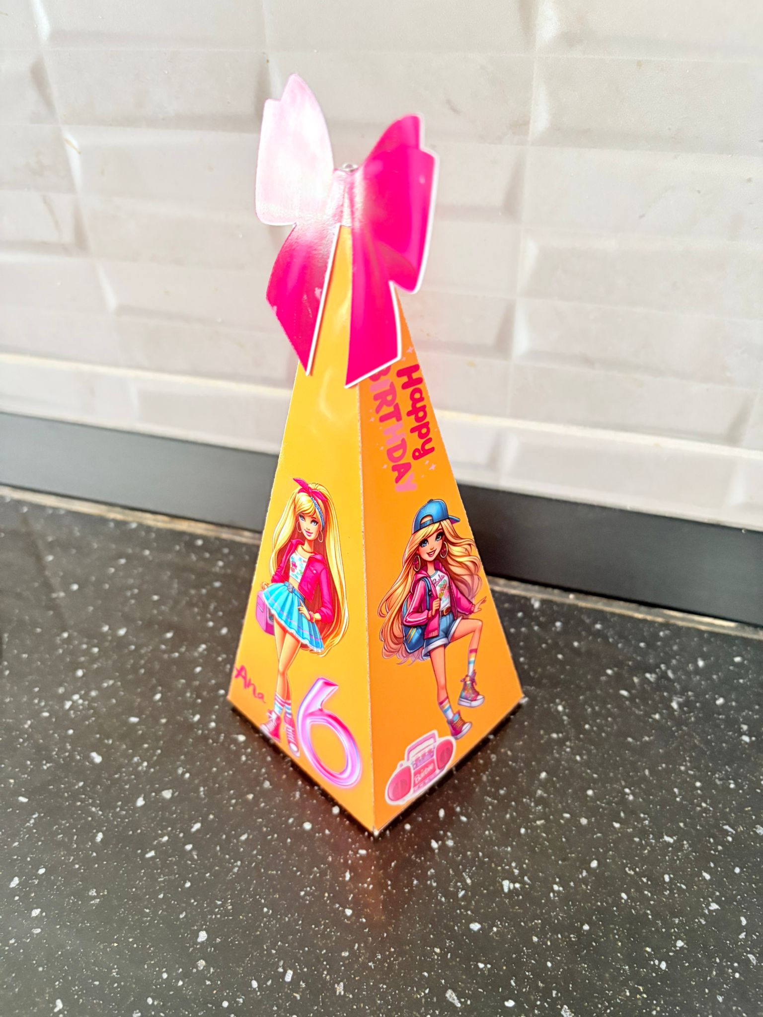 Cutii tip piramida, tematică la alegere, ideal pentru aniversări și candy bar.Design personalizat cu: