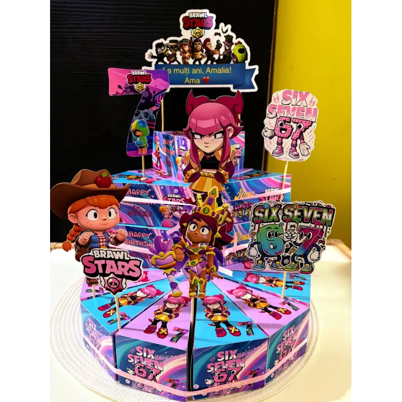 Tort decorativ din triunghiuri, tematică la alegere, ideal pentru aniversări și candy bar.Design personalizat cu:
