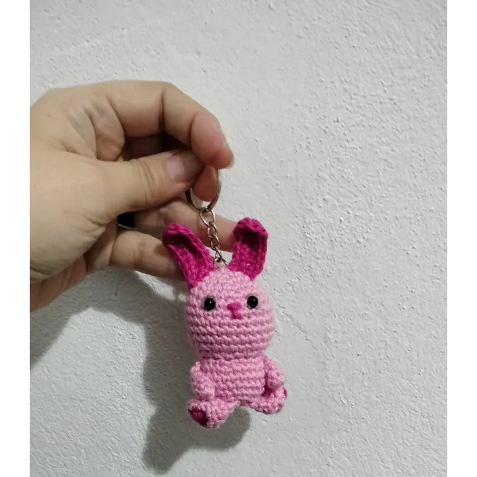 Breloc iepuras, realizat manual din bumbac mercerizat 100%, cu umplutura hipoalergenica, perfect pentru a fi oferit cadou de Paste, si nu numai.