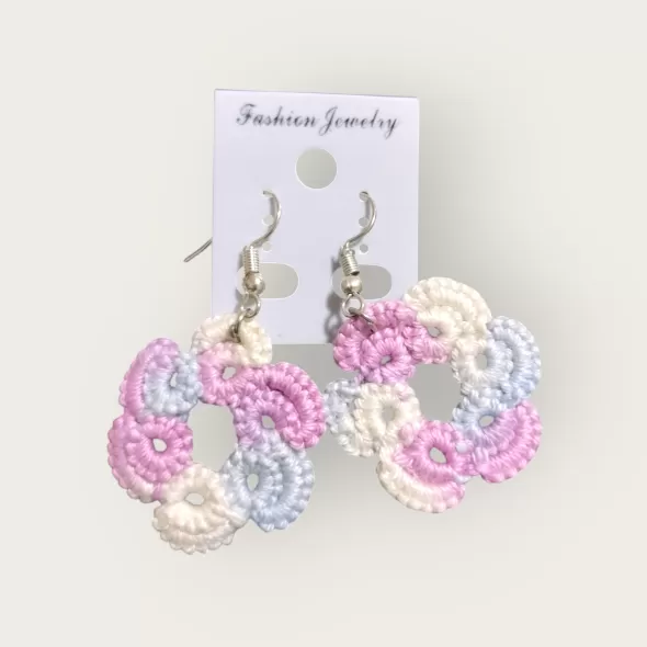 Cercei lucrati manual cu tehnica frivolite, tehnica dantelei.