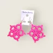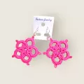 Cercei lucrati manual cu tehnica frivolite, tehnica dantelei. Sunt creati din bumbac mercerizat, iar apoi apretati. Tortitele sunt din inox. Pot fi purtati zi de zi, la tinute casual sau la diferite ocazii. Culorile pot fi diferite, in functie de pixelii ecranului dvs.