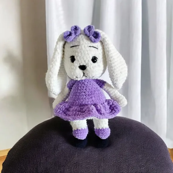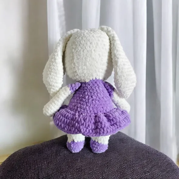 Cu rochita sa mov, delicata, si funditele asortate, este o jucarie adorabila, ideala pentru cadourile de Paste, aniversari sau pur si simplu pentru a aduce un zambet pe fetele celor ce il vor primi.
