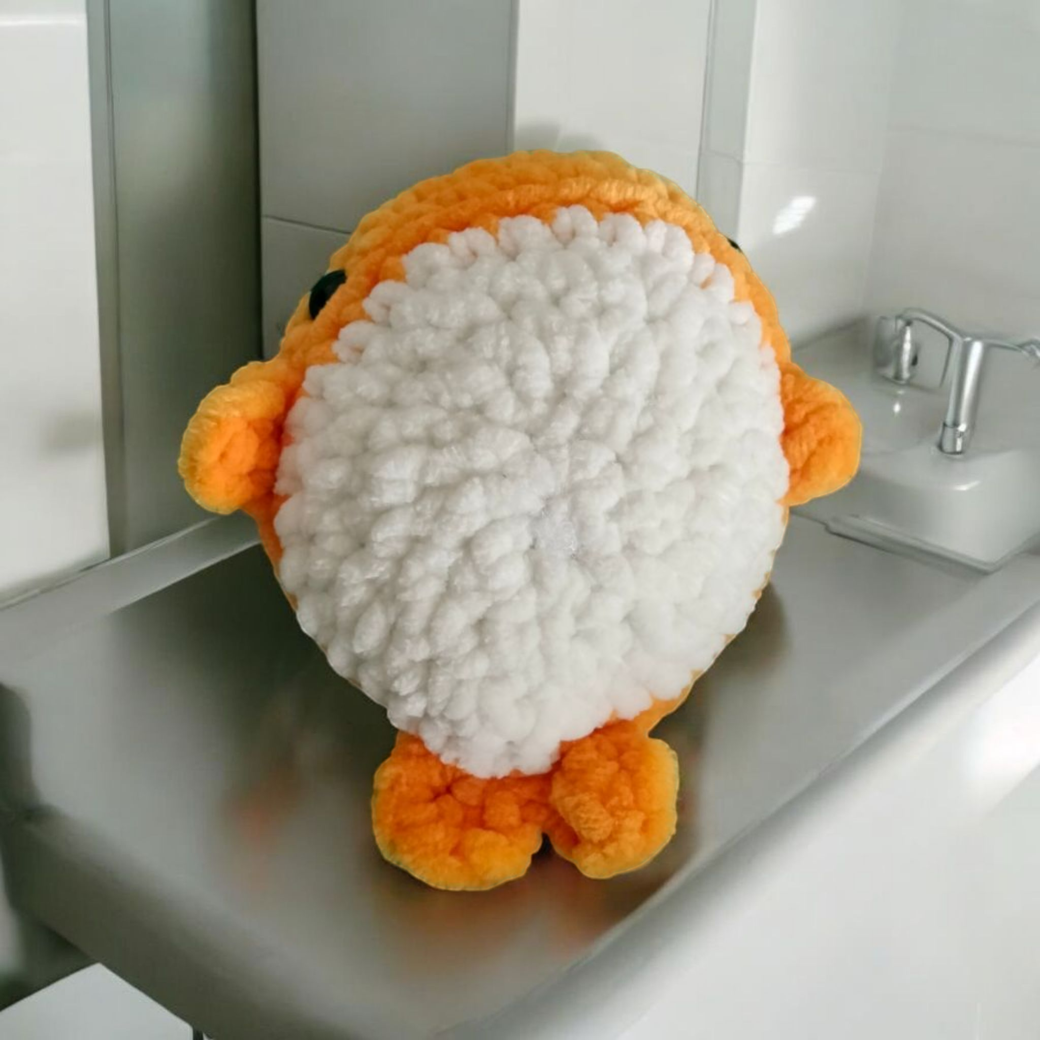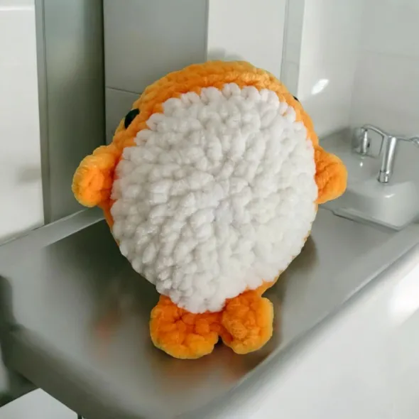 Mini balena este lucrata din catifea, are umplutura hipoalergenica, iar ochisorii sunt prinsi cu sigurante. Este companionul perfect al copilasilor sau poate fi chiar un cadou deosebit pentru iubitorii de articole handmade.