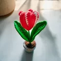 Laleaua si ghiveciul sunt realizati din fir de bumbac, iar tija este de plastic, invelita in fir de bumbac. Pentru a avea stabilitate, sunt lipiti la baza cu silicon.