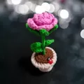 Mini trandafir crosetat, prins in ghiveci- poate fi oferit cadou de 1 sau 8 Martie unei doamne sau domnisoare speciale, sau pur si simplu poate fi folosit ca decor pentru birou.