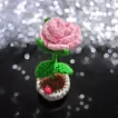 Mini trandafir crosetat, prins in ghiveci- poate fi oferit cadou de 1 sau 8 Martie unei doamne sau domnisoare speciale, sau pur si simplu poate fi folosit ca decor pentru birou.