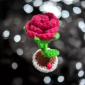 Mini trandafir crosetat, prins in ghiveci- poate fi oferit cadou de 1 sau 8 Martie unei doamne sau domnisoare speciale, sau pur si simplu poate fi folosit ca decor pentru birou.