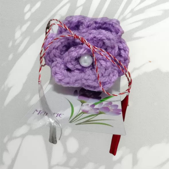 Martisor crosetat, cusut pe ac de brosa din inox.
