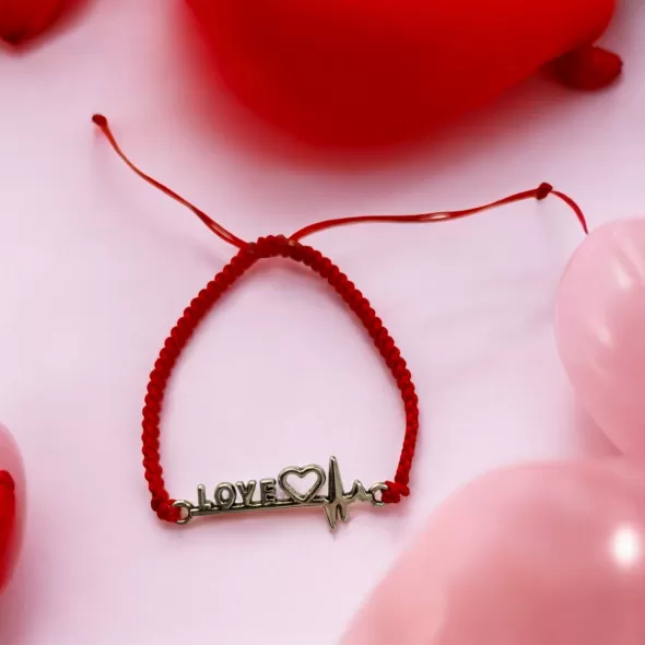 Bratara lucrata manual, din fir nylon, cu accesoriu de inox potrivita a fi oferita cu ocazia zilei indragostitilor.