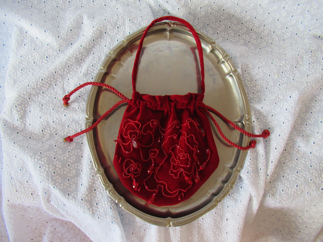 Mâner din catifea brodată lucrat manual pentru a completa armonios designul genții, oferind un plus de confort