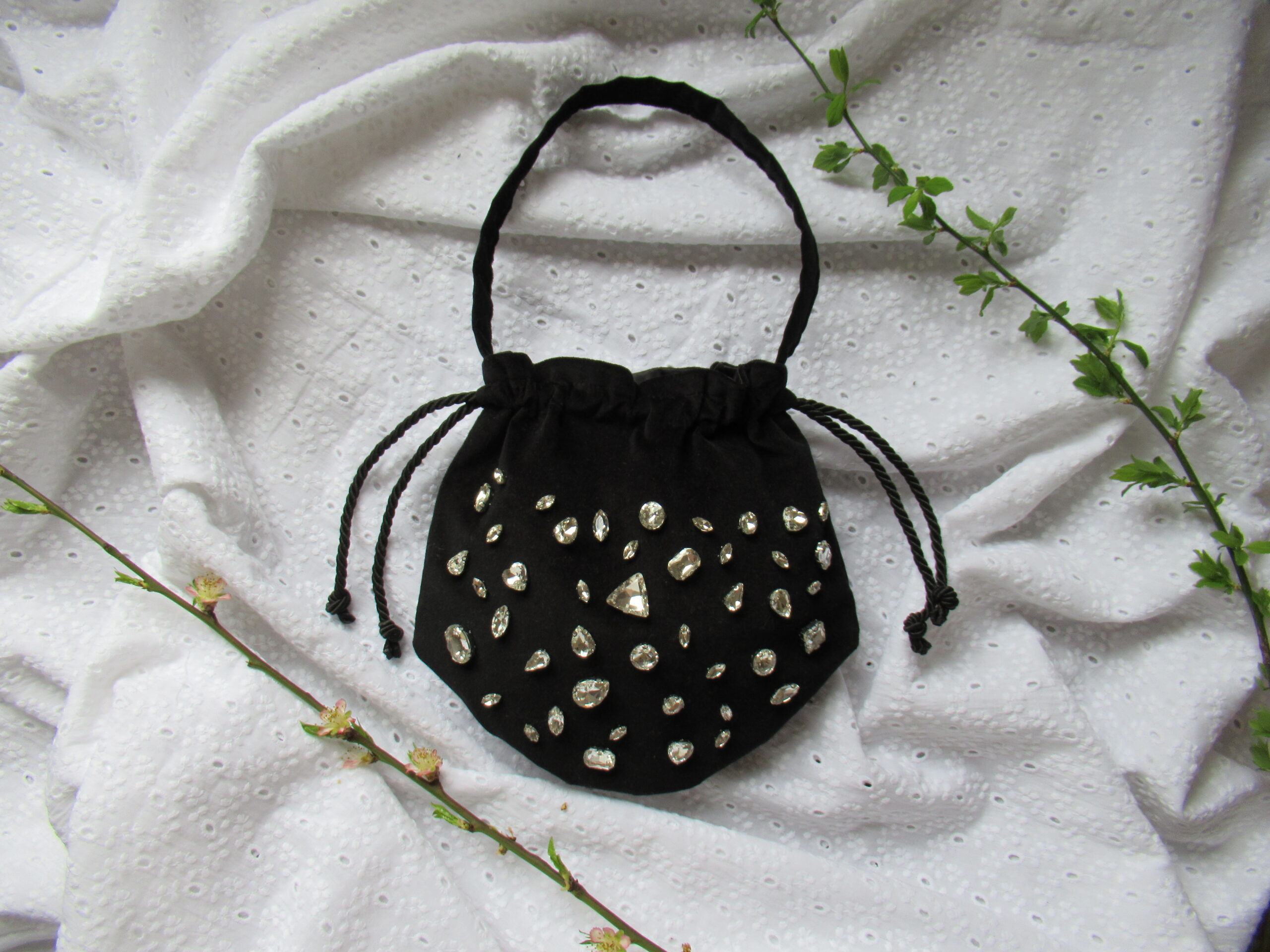 Vis de Cristal - Geantă de catifea brodată cu cristale, negru