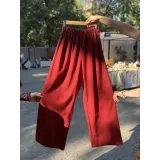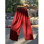 Pantaloni lungi roșii din in cu elastic - Pantaloni damă