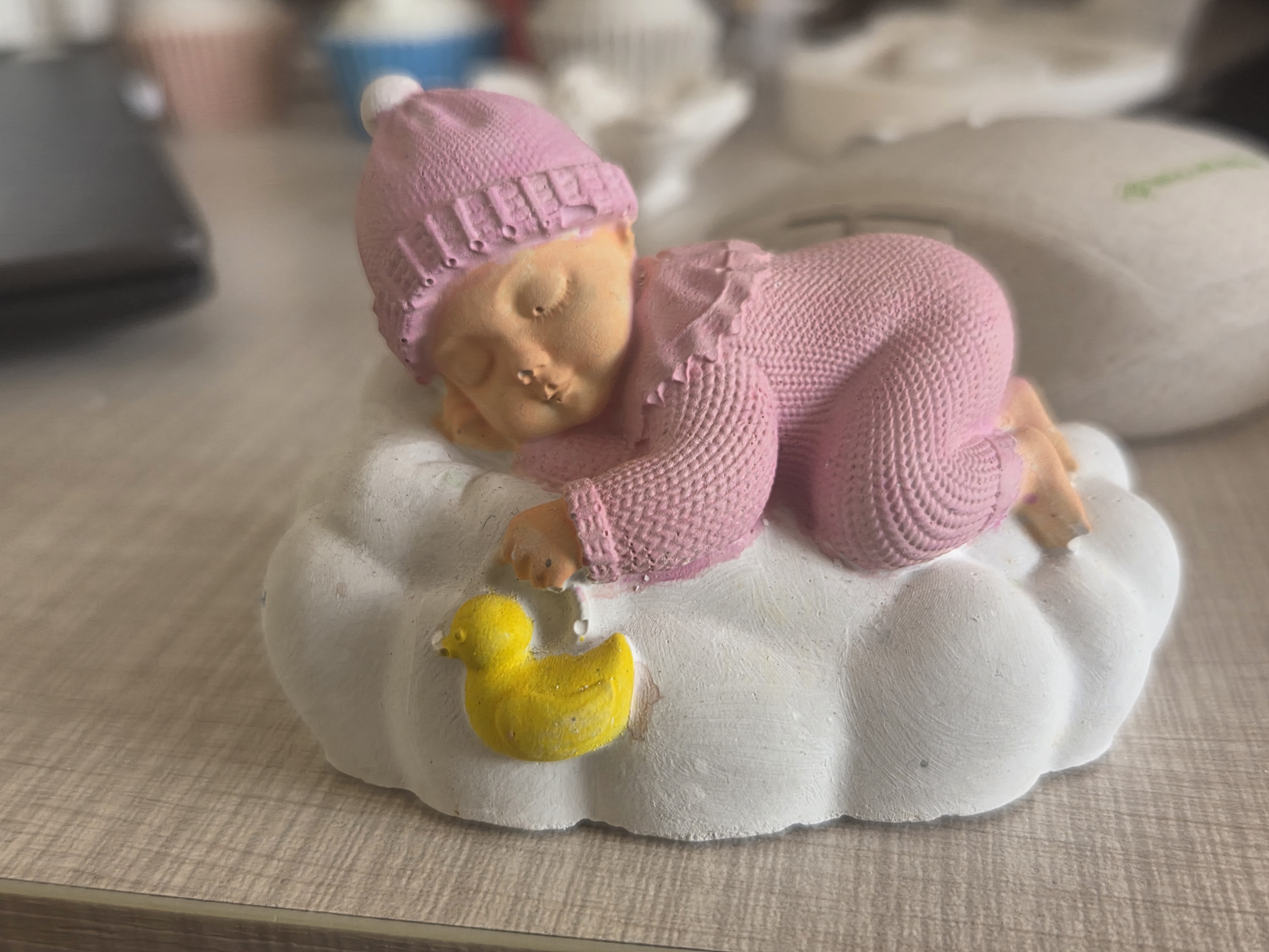 Bebeluș pe norișor din ipsos, realizat manual, simbol al purității și al unui nou început ️