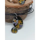 În inima acestui set se află flori de câmp delicate, conservate cu măiestrie în rășină epoxidică. Designul simplu, dar elegant, evocă frumusețea verii și a naturii înflorite. Pandantivul, accesorizat cu un șnur de bumbac alb sau negru, și cerceii asortați creează un ansamblu plin de prospețime, care te va face să te simți specială în fiecare zi.