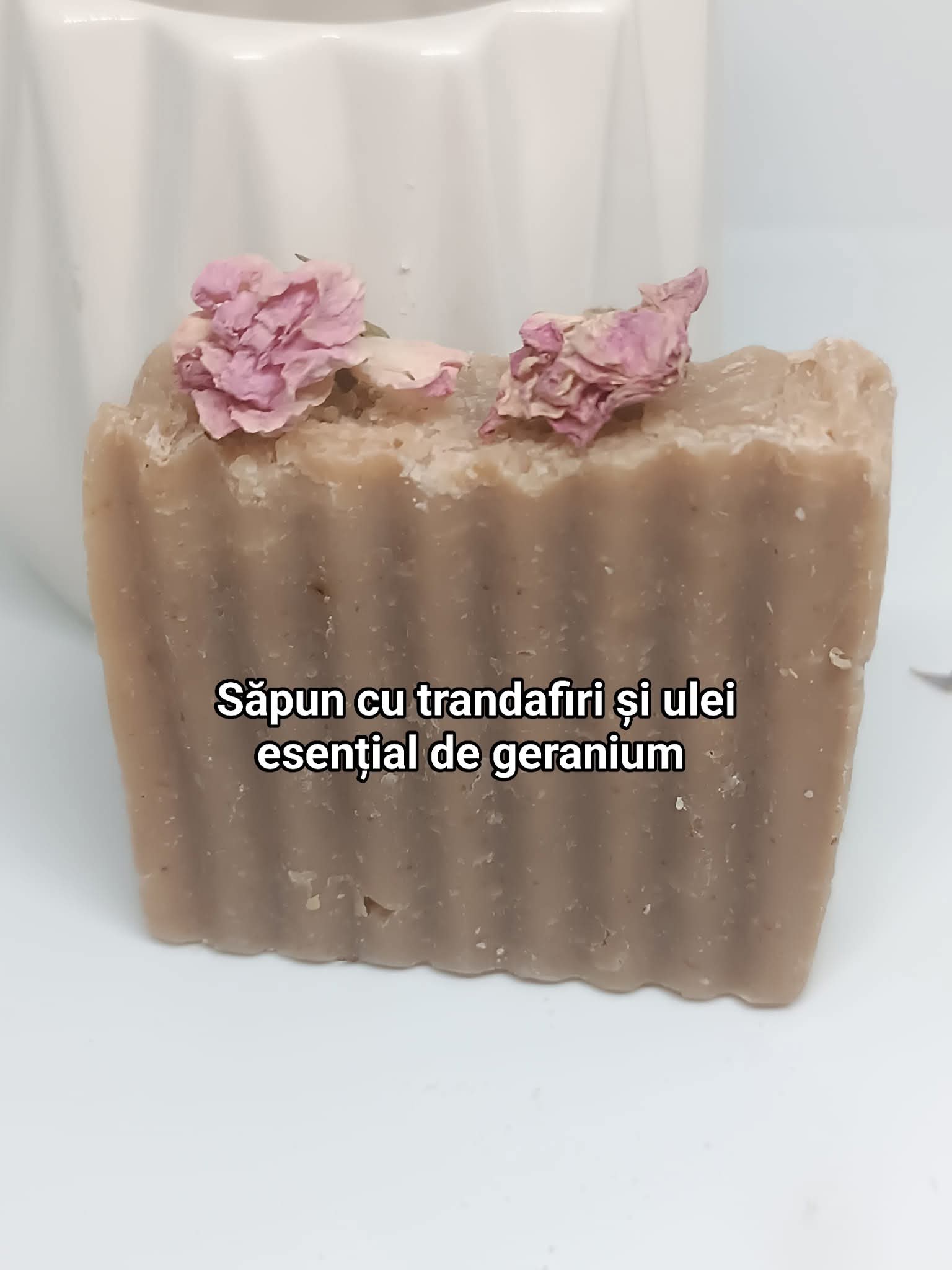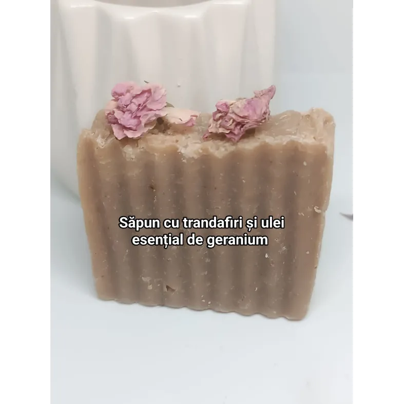 Ingrediente: Ulei de măsline, ulei de cocos, unt de shea, hidrolat de trandafir, ulei esențial de geranium și, mai ales, dragoste.