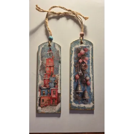 Decoratiune sau semn de carte pe baza de lemn decorat manual cu tehnici art&craft.
