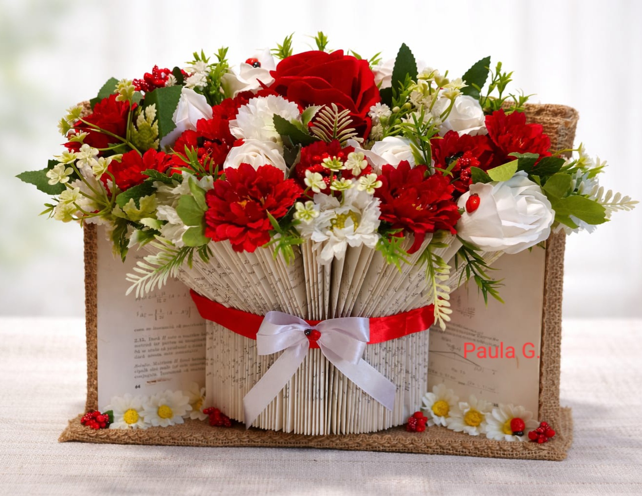 Un frumos aranjament creat pe o carte veche, recondiționată și îmbrăcată în iută! Are lungime de 35 cm și înălțime de 33 cm! Oferă un cadou inedit care rămâne frumos peste timp, iar fiecare detaliu transmite apreciere, respect și emoție!