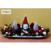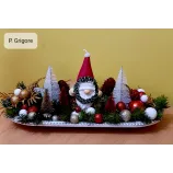 Aranjament Craciun, brad artificial, creat pe tava de lemn cu lumănare