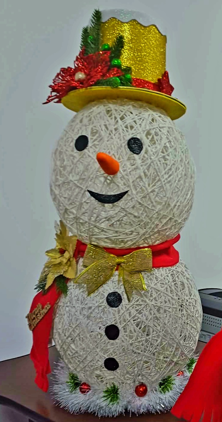 Omul de zăpadă, o decorațiune handmade pentru voi adulții ce în suflet sunteți încă copii și  simțiți frumusețea lucrurilor  făcute de mână, sau copiilor voștri o bucurie făcută din inimă! Are 60 cm înălțime și instalație led pe baterii!