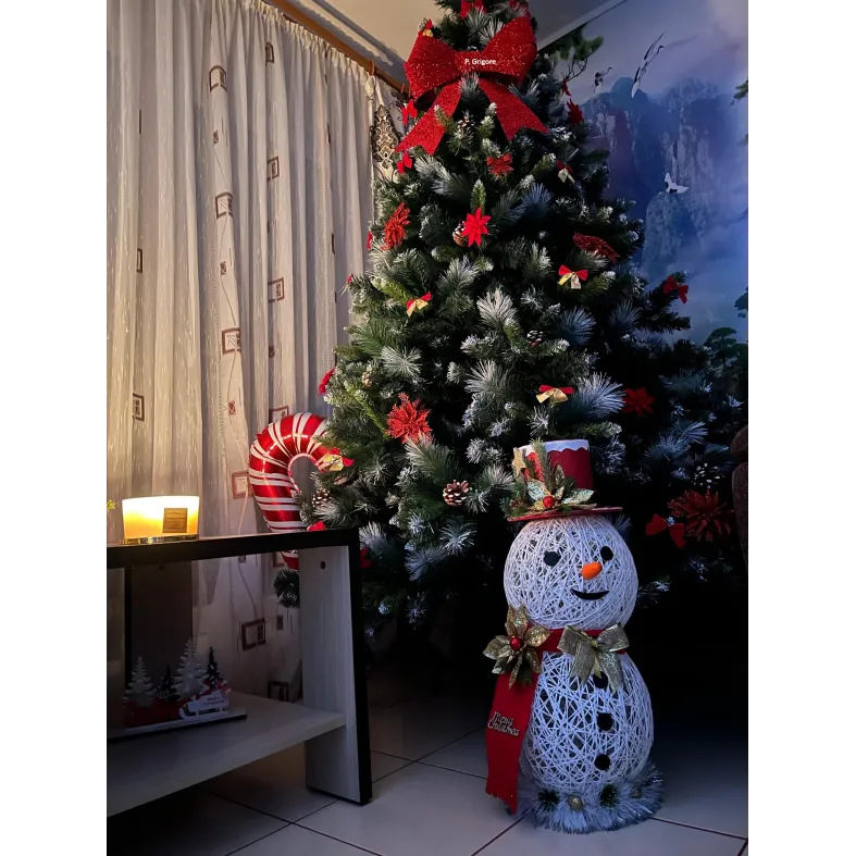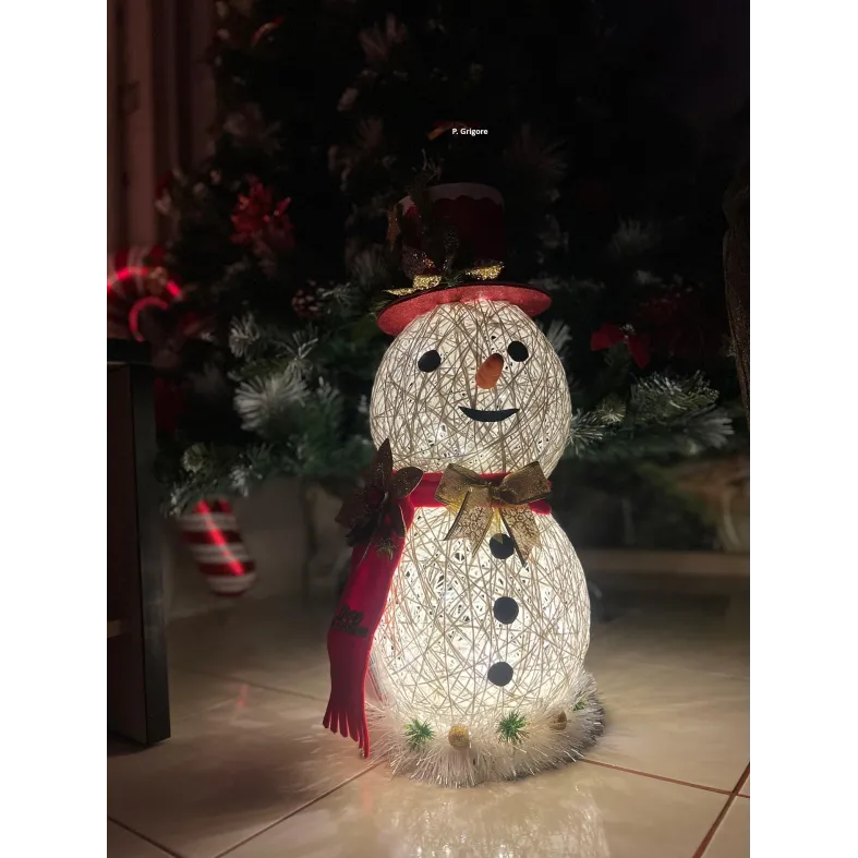 Omul de zăpadă, o decorațiune care va atrage toate privirile, și aduce spiritul Crăciunului în orice casă! Potrivit ca decor sau cadou pentru cei dragi! 55 cm înălțime și instalație led pe baterii!