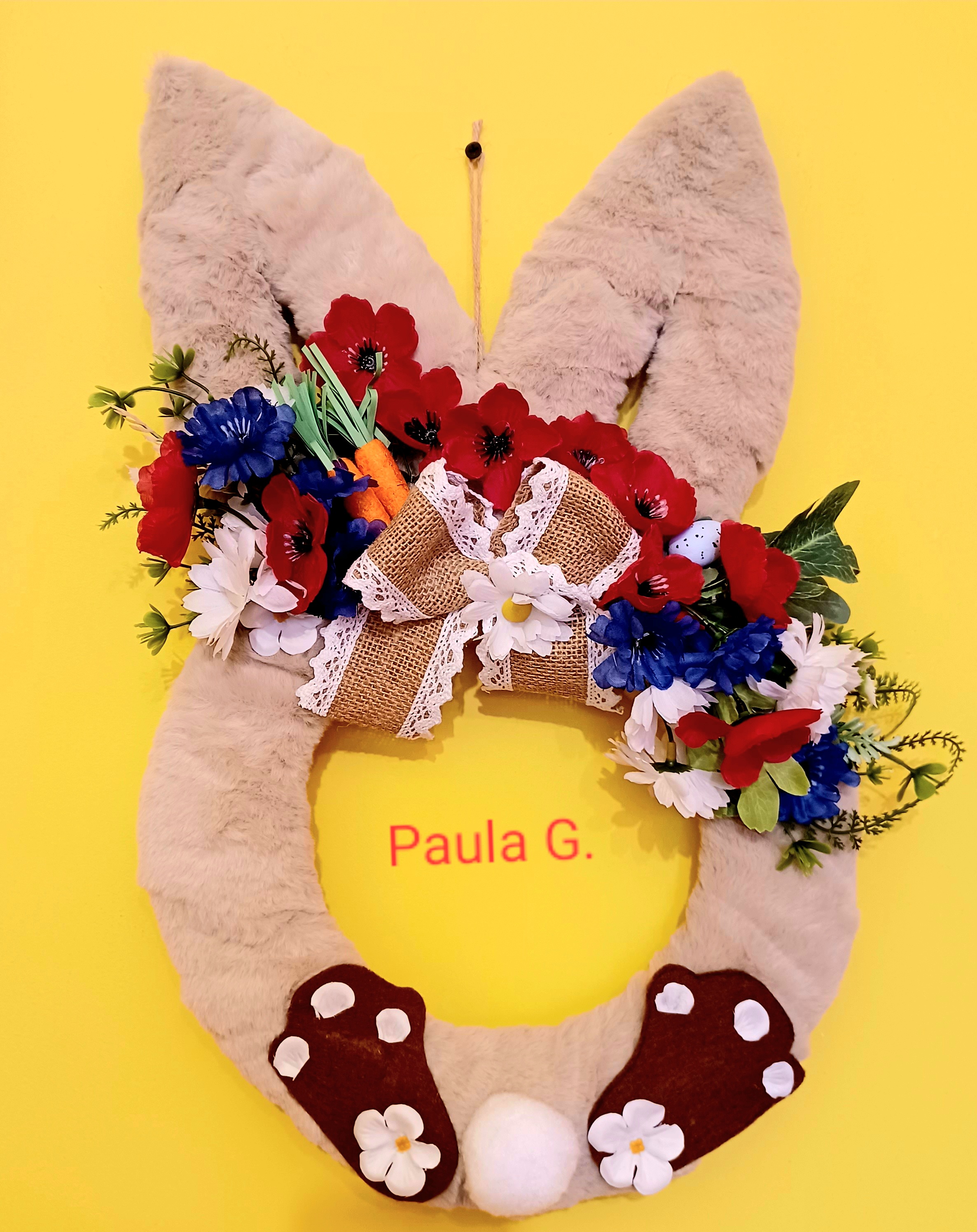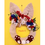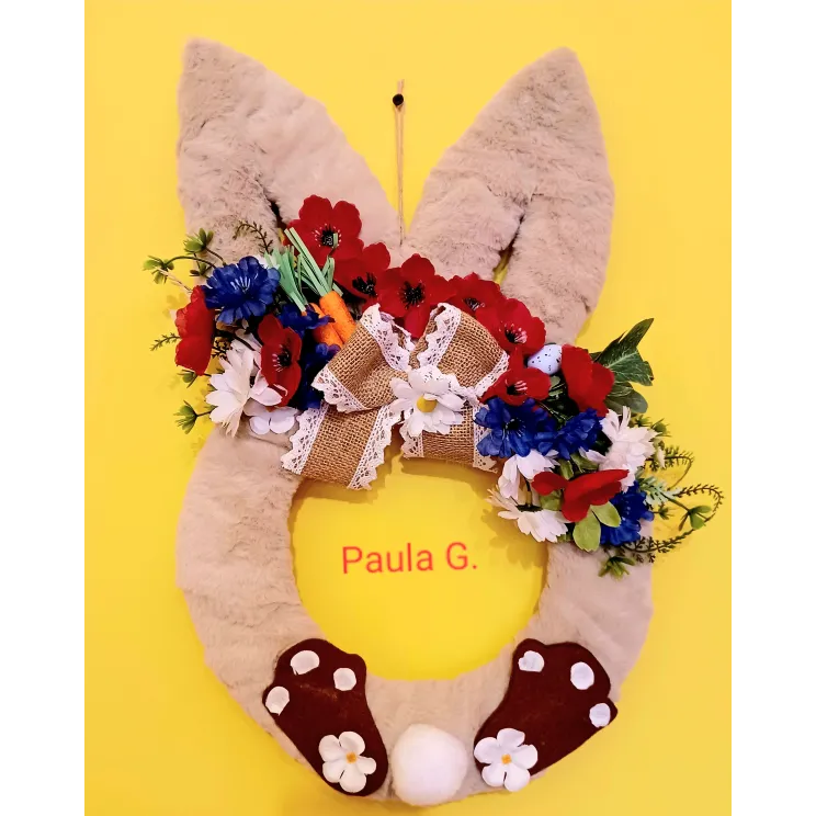 Aranjament ușă iepuraș pe suport cu flori artificiale, 50 cm înălțime, se pregătește pentru cei dragi!