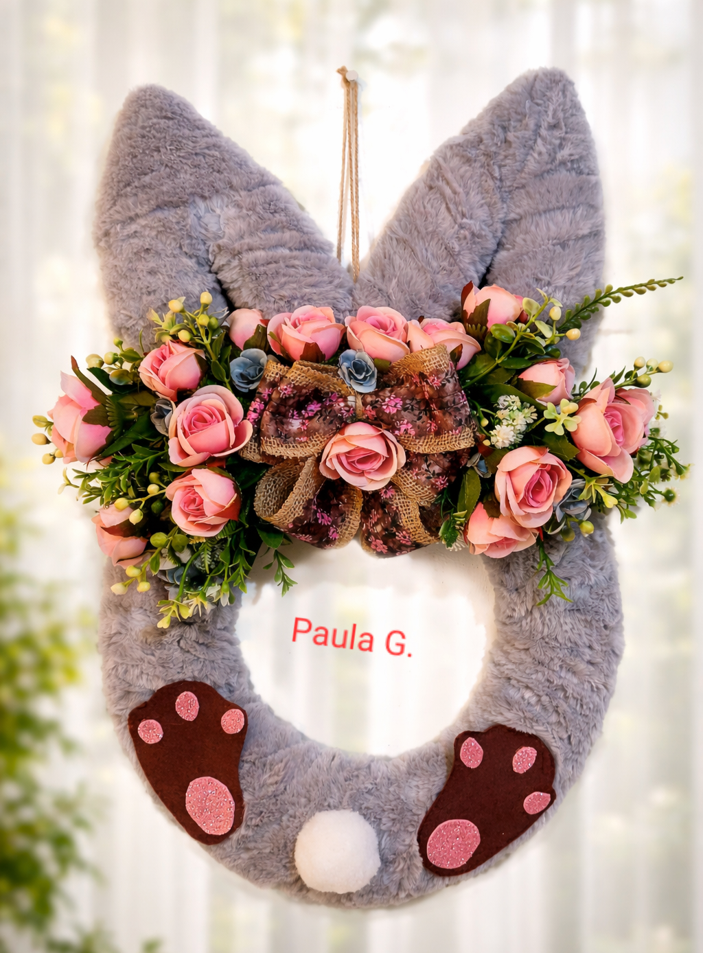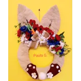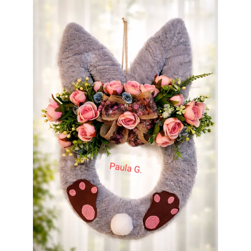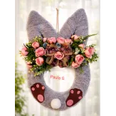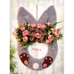 Aranjament primăvară ușă iepuras, realizat cu flori artificiale 50 cm înălțime!