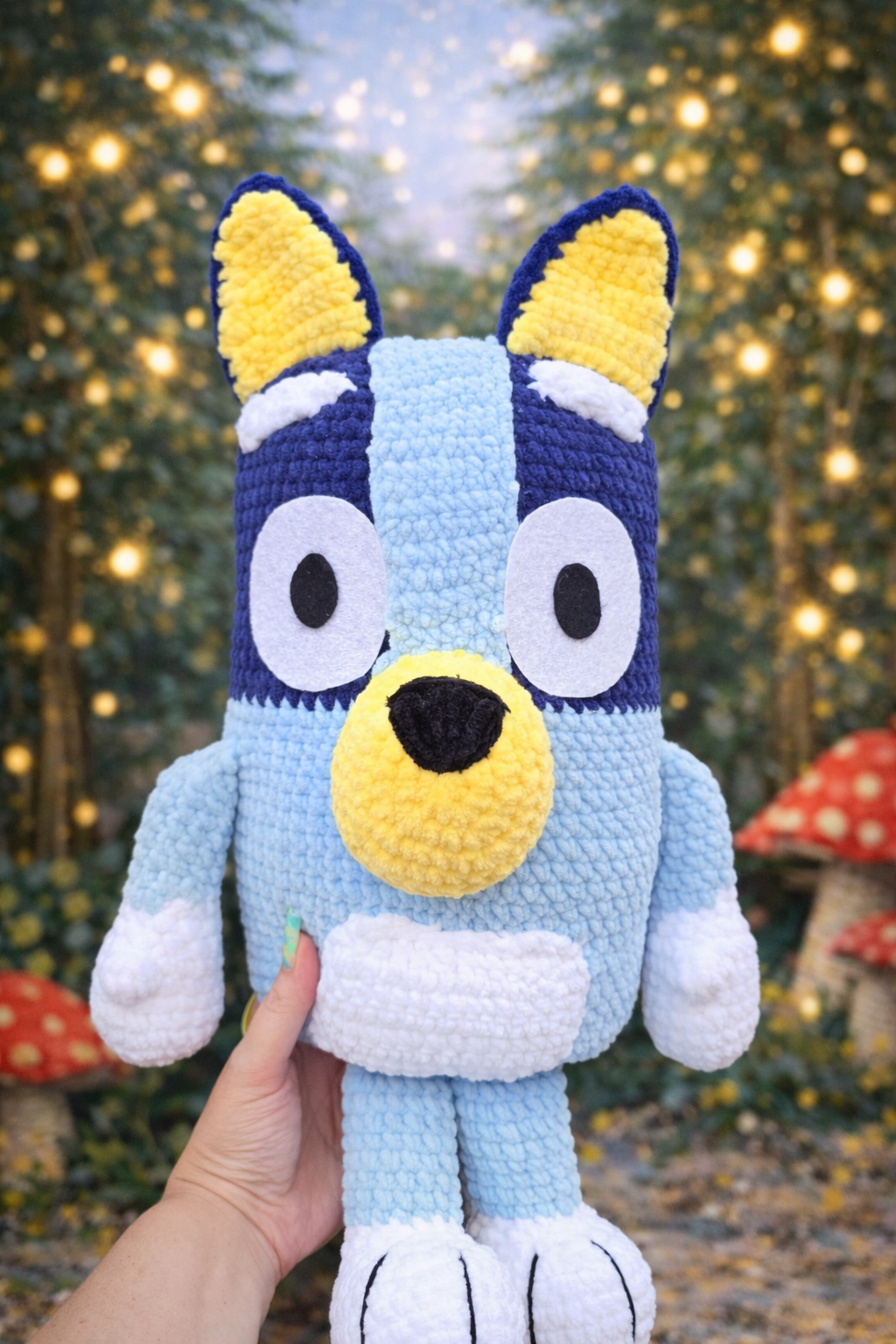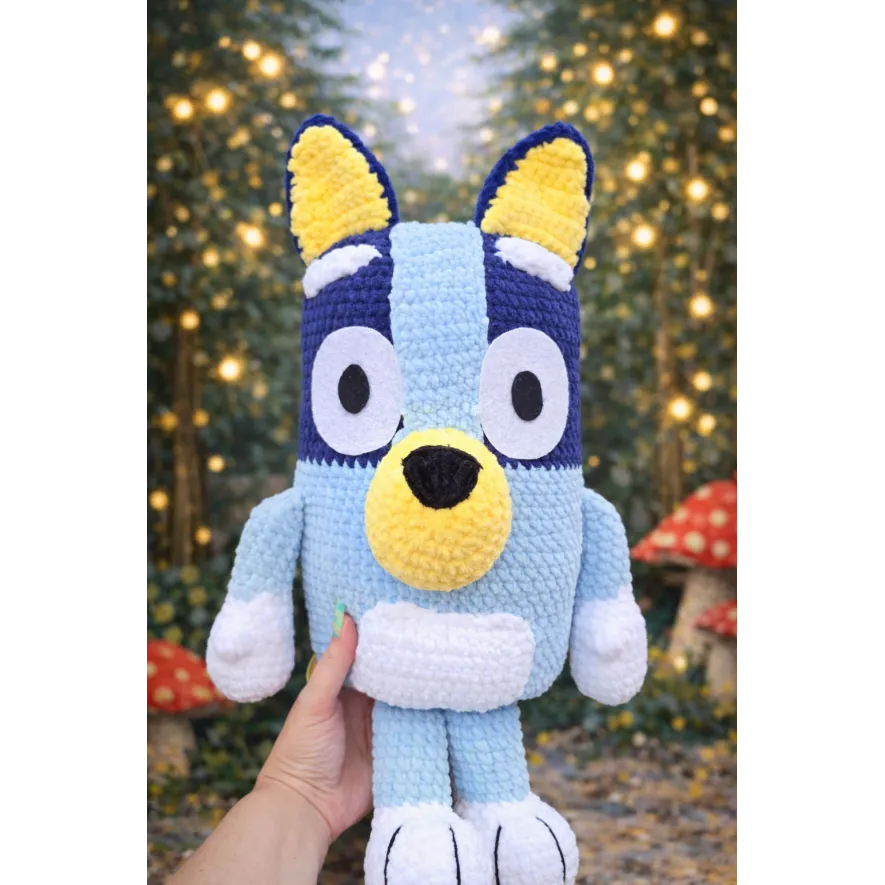 Cățeluș croșetat din pluș moale – jucărie handmade în nuanțe de albastru Acest cățeluș adorabil este realizat manual din fir pufos și catifelat, fiind moale la atingere și perfect pentru joacă și îmbrățișări. Cu urechiușe colorate, botic galben și expresie veselă, jucăria are un design jucăuș și prietenos, îndrăgit atât de cei mici, cât și de colecționarii de produse handmade. Caracteristici:lucrat manual cu grijă și atenție la detaliimaterial moale, sigur și confortabil pentru copiiculori plăcute și expresie prietenoasăpotrivit pentru cadouri, joacă sau decor în camera copilului Dimensiune aproximativă: 53 cm Întreținere: curățare delicată, manualUn cățeluș pufos și vesel — gata să devină noul prieten de joacă al celor mici!