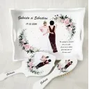 Un produs personalizat, elegant și distinctiv, creat special pentru a adăuga un plus de rafinament în ziua cea mare a mirelui. Acest set este realizat cu atenție la detalii și cu o grijă aparte pentru design, oferind o notă personalizată prin gravarea numelui mirelui sau al unui text de suflet. Este un element practic și stilat, perfect pentru a fi folosit în timpul pregătirilor premergătoare ceremoniei sau pentru a păstra bijuteriile și alte obiecte de preț. O alegere cu adevărat specială, care va completa cu eleganță și originalitate momentul unic al nunții. Tehnica de realizare este pictură basic si transfer de imagine.