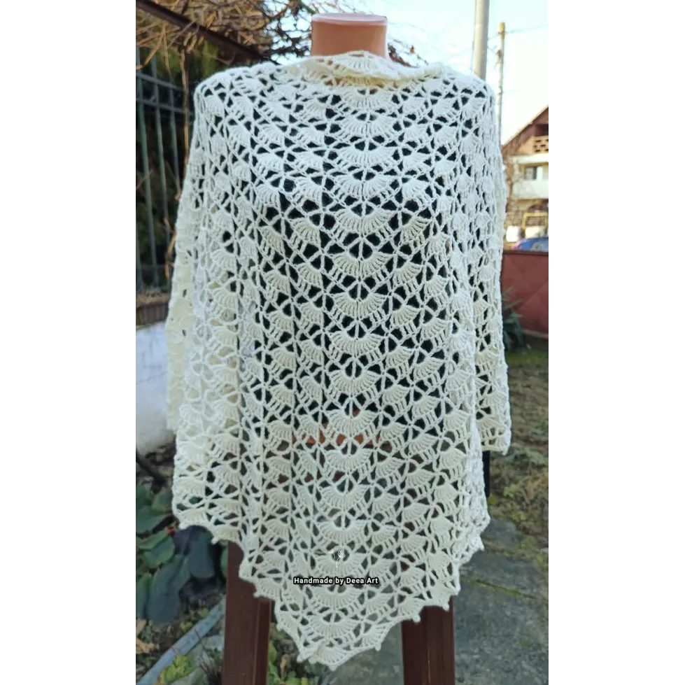 Descoperă eleganța și rafinamentul într-un singur accesoriu cu noul șal croșetat ivory pentru mirese, realizat manual cu dragoste și atenție la detalii. Perfect pentru a completa look-ul tău de mireasă și a adăuga un plus de confort în cea mai specială zi a vieții tale.
