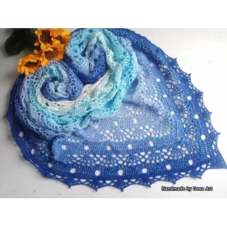 Sal croșetat manual, lucrat după patternul SisLove Shawl by SisHomemade, din bumbac cu acril, in superbe combinații de albastru și roz, accesoriul ideal oricărei ținute, poate fi purtat ca și eșarfă sau pe umeri. Lucrat din fire de calitate, moale și fin, poate fi cadoul ideal potrivit oricărei ocazii. Instrucțiuni de intretinere: - se spala manual, in ap a la temperatura de maxim 30° - se stoarce de excesul de apa intr un prosop curat, prin presare -se usucă pe suprafața plana, întins, pentru a și pastra forma - nu se spala in mașină de spălat - nu se usucă in uscător, nu se calca, nu se folosește înălbitor, nu se usucă...