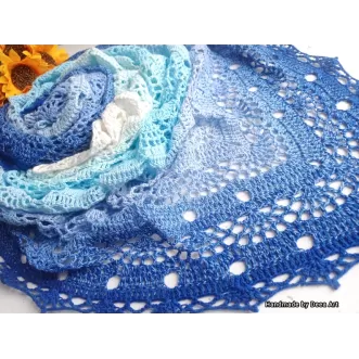 Sal croșetat manual, lucrat după patternul SisLove Shawl by SisHomemade, din bumbac 100%, in superbe combinații de albastru, bej și alb, accesoriul ideal oricărei ținute, poate fi purtat ca și eșarfă sau pe umeri. Lucrat din fire de calitate, moale și fin, poate fi cadoul ideal potrivit oricărei ocazii. Instrucțiuni de intretinere: - se spala manual, in ap a la temperatura de maxim 30° - se stoarce de excesul de apa intr un prosop curat, prin presare -se usucă pe suprafața plana, întins, pentru a și pastra forma - nu se spala in mașină de spălat - nu se usucă in uscător, nu se calca, nu se folosește înălbitor, nu se usucă...