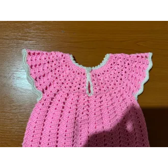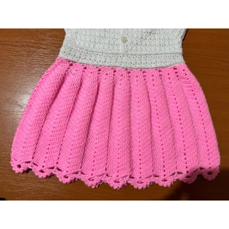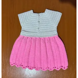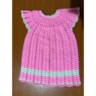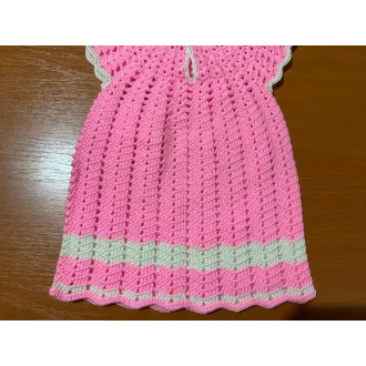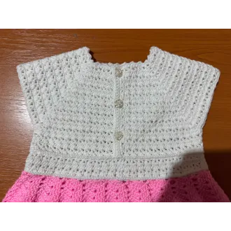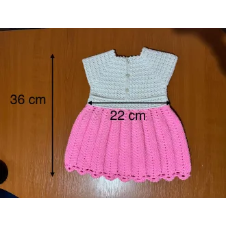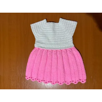 Rochita roz cu alb pentru fetite, lucrata 100% manual din material acrilic. Partea roz a rochitei este lucrata din lana si matase, moale la atingere. Este potrivita pentru 9-12 luni.