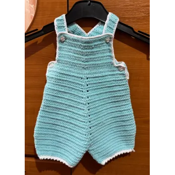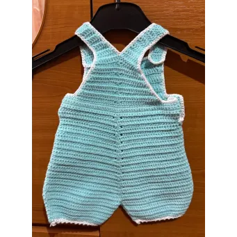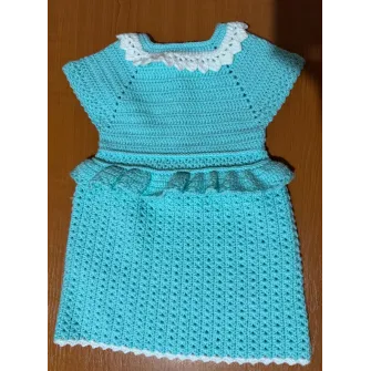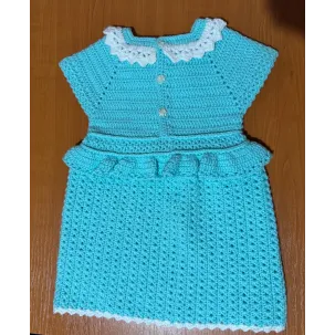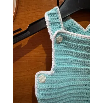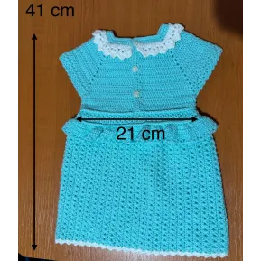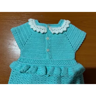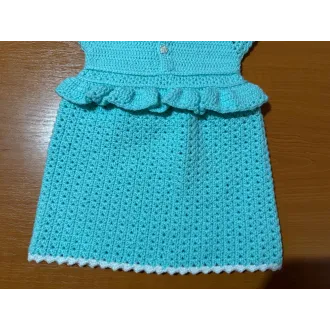 Sarafan turcoaz special pentru bebelusi intre 6-9 luni, lucrat 100% manual din material acrilic. Prezinta nasturi ce pot fi desfacuti cu usurinta pentru o imbracare rapida.