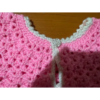 Vestuta crosetata pentru bebelusi Dimensiuni: latime 25 cm, lungime 26 cm Material: acril soft 100 %, de o calitate foarte buna Culorile pot fi diferite, in functie de pixelii ecranului dvs.