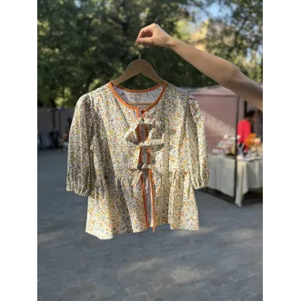 Bluza crem cu flori mici colorate este alegerea perfectă pentru o ținută delicată și veselă. Materialul 100% bumbac oferă lejeritate și confort, iar imprimeul floral aduce o notă de prospețime și feminitate. Culoare: Crem cu flori mici multicolore. Material: 100% bumbac