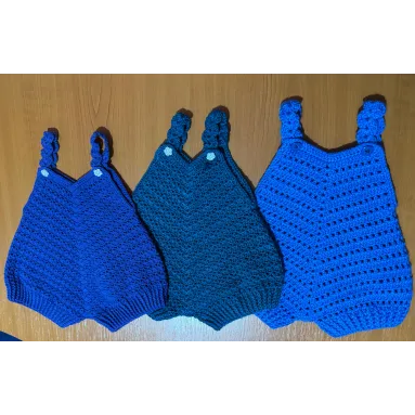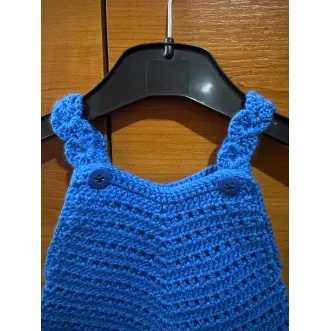 Sarafan bleu pentru bebelusi baietei, potrivit pentru 6-9 luni, lucrat 100% manual din material acrilic. Sunt disponibile 2 modele bleu si 1 model verde smarald.