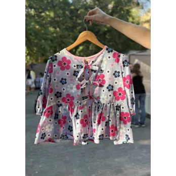 Bluza albastră cu flori roz combină eleganța cu confortul zilnic. Materialul 100% bumbac este moale și plăcut la purtare, iar imprimeul floral feminin aduce un aer delicat ținutelor tale. Culoare: Albastru cu flori roz. Material: 100% bumbac