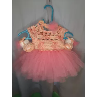 Rochița pentru bebeluși, croșetată, este o piesă delicată și adorabilă, ideală pentru micuțele doamne. Realizată dintr-un fir moale și confortabil, aceasta oferă atât stil, cât și lejeritate. Detaliile din tull adaugă un aer jucăuș și elegant, completând perfect designul rochiței. Perfectă pentru ocazii speciale sau pentru sesiunile de fotografii, această rochiță va face fiecare moment cu bebelușa să fie memorabil! Ușor de îmbrăcat și confortabil de purtat, este alegerea ideală pentru sezonul cald.